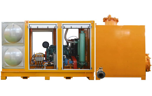 漢諾的高壓水設備是由各個相關設備和子系統組成的一套完整設備,由柴油發動機、高壓往復泵、平面清洗手推車、水箱、控制系統等組成。