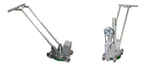 漢諾公司的平面清洗裝置中,為用戶提供了清洗手推車設備。手推車底部裝有小輪,可以很容易地用手推著走,手推車配有小型電動機為底部旋轉噴盤提供動力,依靠旋轉射流的旋轉動力,可以使清洗效率得到更充分的發揮。