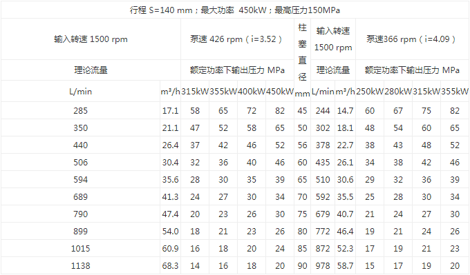 最大流量: 1138L/min   最大功率: 450kW