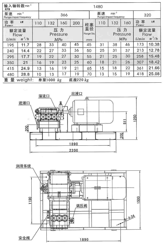 適于做冶金除鱗、油田二次采油、三次采油注水、注劑,水利活塞泵的地面動力源以及其它需要大流最的工業應用。既可泵送清水、乳化液,亦能泵送其它具有化學性質的液休.